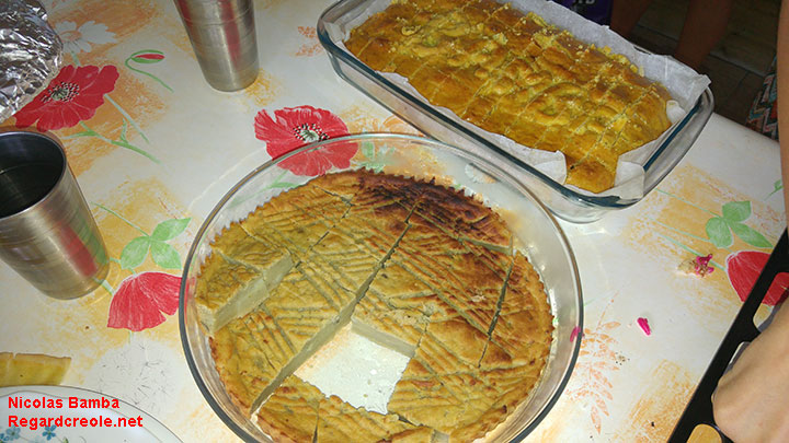 Pour finir ce pique-nique, il fallait bien des desserts. Au menu : gâteau-patate, tarte à la patate douce, crêpes de bananes, gâteau de mariage, pâté créole à la confiture de papaye. Une bonne manière de finir un repas sur une note sucrée.